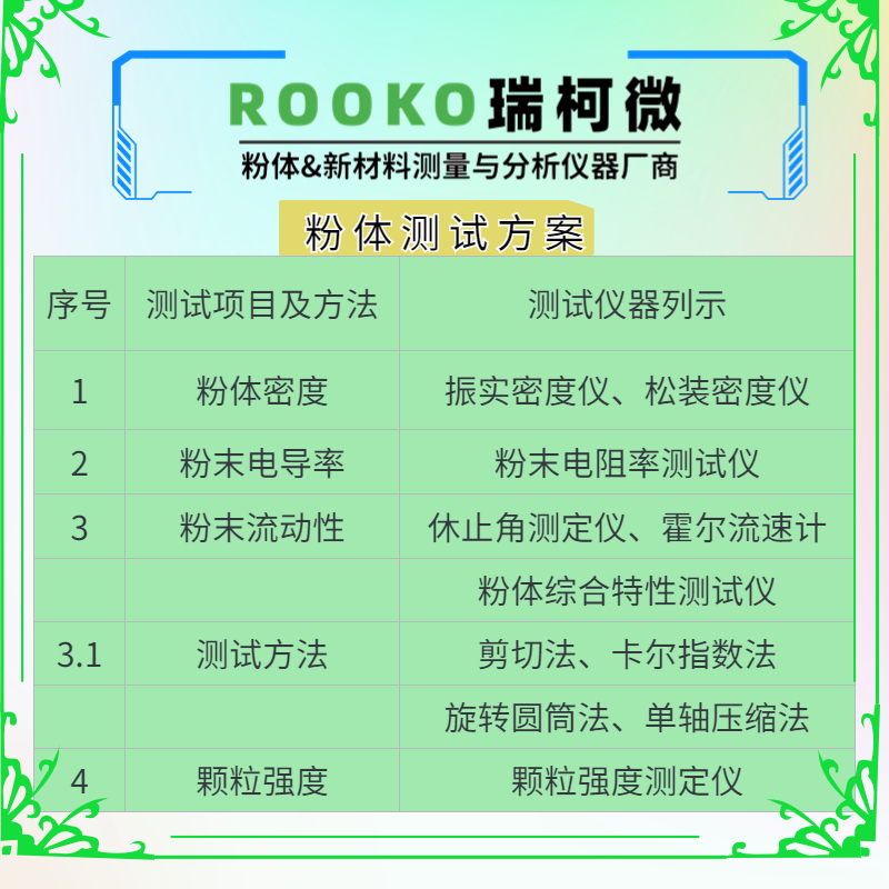 流與不流分析 ;粒度;水分;體積分析;電導(dǎo)性、靜電電荷分析.