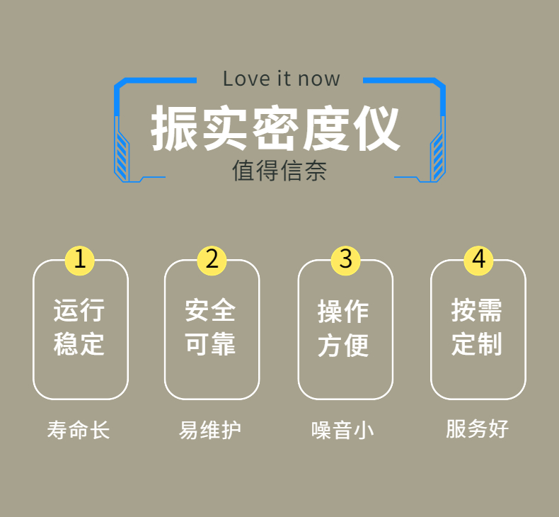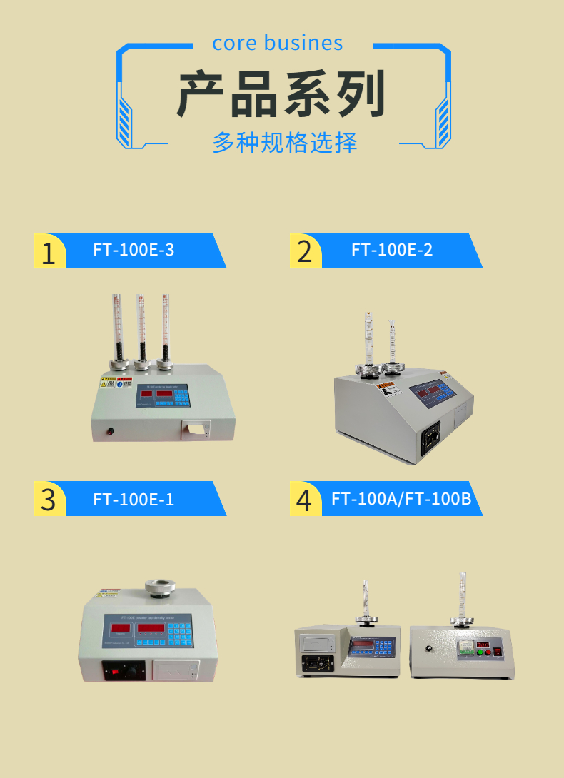 將粉末量筒固定在機械振動裝置上,振動電機帶動機械振動裝置上下振動,裝有粉末的刻度量筒隨機械振動裝置而發生有節拍的振動,隨著振動次數的增加,量筒里的粉末逐漸振實,振動次數到達設定的次數后,機械振動裝置停止振動,讀出刻度試管的體積,根據密度的定義:質量除以體積、從而求出振實后的粉末密度。