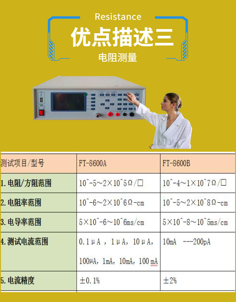 2.四探針測試儀參照GB/T 1551、GB/T1552-1995,ASTM F84美國A.S.T.M 標準。