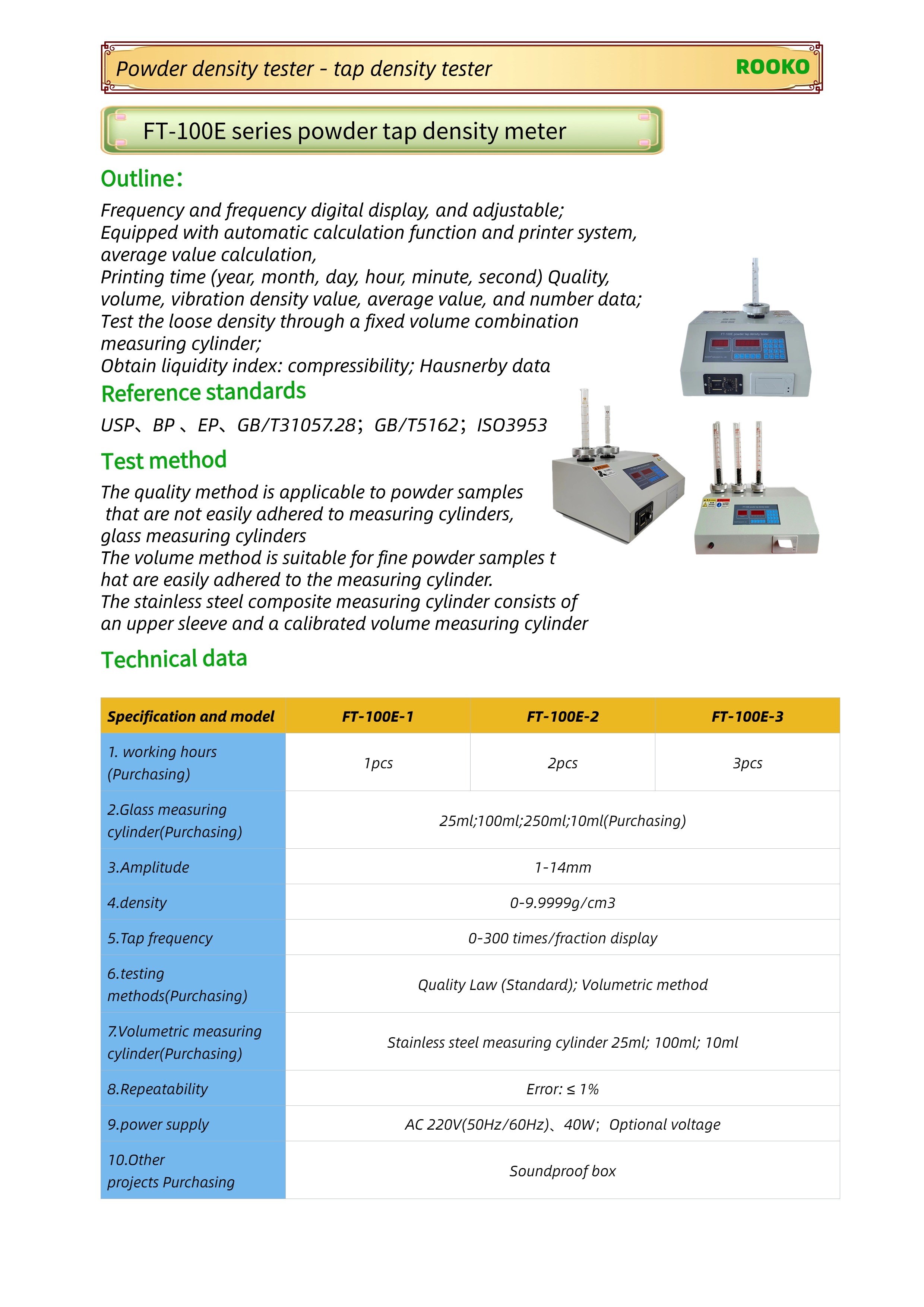 FT-100E series powder tap density meter